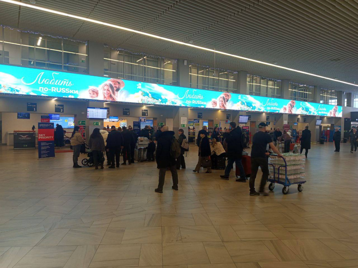 По данным онлайн-табло на 11:00, задерживается прилёт 21 рейса из Москвы, Санкт-Петербурга, Екатеринбурга, Казани, Череповца, Иваново, Самары. ИС опозданием из Калининграда вылетят 11 самолётов в Москву, Петербург и Самару. Рейс авиакомпании «Победа» в Шереметьево, который должен был вылететь в 10:30 утра, отменен в обе стороны.