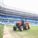 Сначала рабочие сняли верхний слой поля, затем агрономы засеяли траву — специально закупленную в Англии смесь из трех сортов, после подсыпали песок и «расчесали» искусственные волокна.